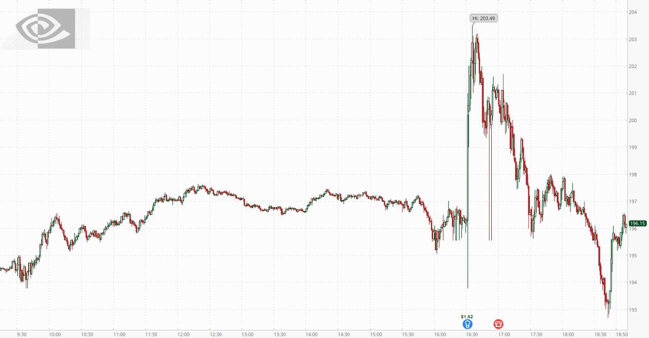 Update 7:00pm. NVDA stock is back to flat, erasing all of its post earnings gains, after what some attribute as a lackluster conference call. Specifically, according to Bloomberg, the company "hasn’t offered many details on the outlook provided that Blackwell and Rubin revenue would exceed $500 billion. Opening comments from CFO Colette Kress that competitors in China are “making progress” and have the potential to disrupt the global AI industry in the long run have also taken some wind out of the stock’s sails."